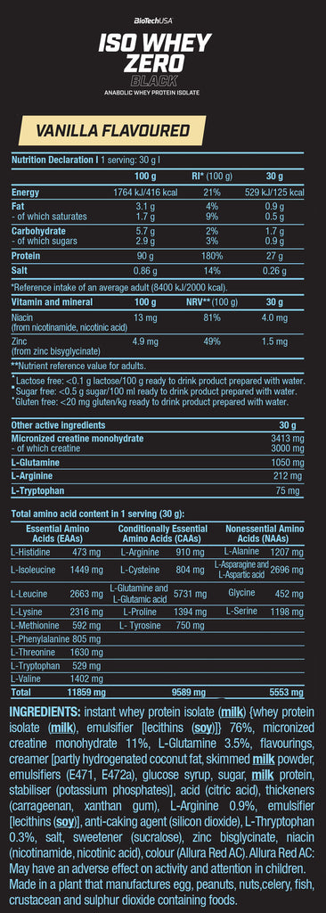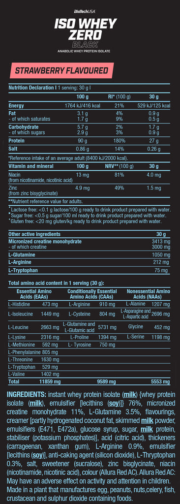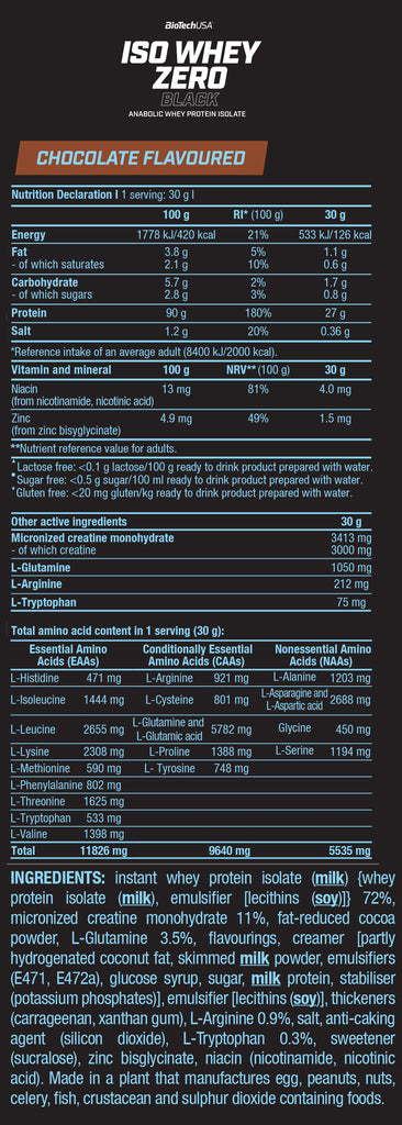 Clarity without compromises! Like all BioTechUSA Iso Whey Zero protein powder, the Black one is also sugar-, lactose- and gluten-free.