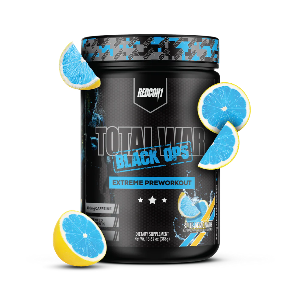 TOTAL WAR BLACK OPS is REDCON1’s most EXTREME preworkout, ever. It’s made for the elite performers. Those who want to go BEYOND their highest state. For those who want to go further, faster. Lift heavier. Unleash unrestrained strength, focus, and power.